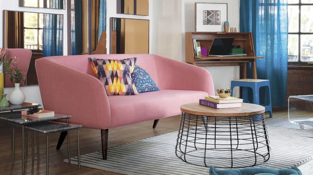 Projekterue apartment sofa | CB2 | 2013 rue sofa Produzent: CB2, Chicago, USA Material: Textil, Ahorn gebeizt Foto Credits: CB2, ellenberger studio