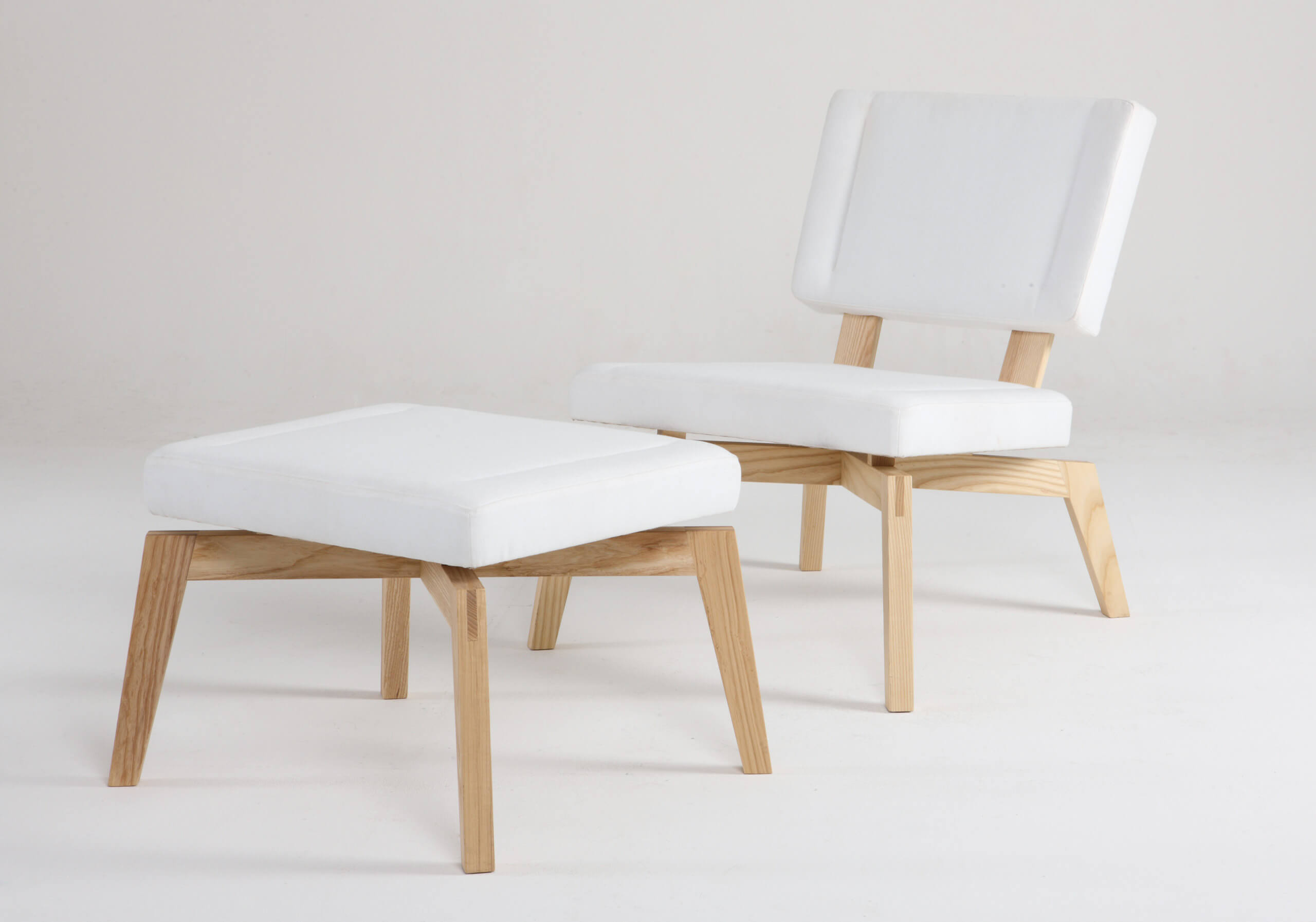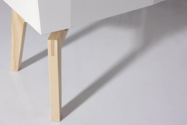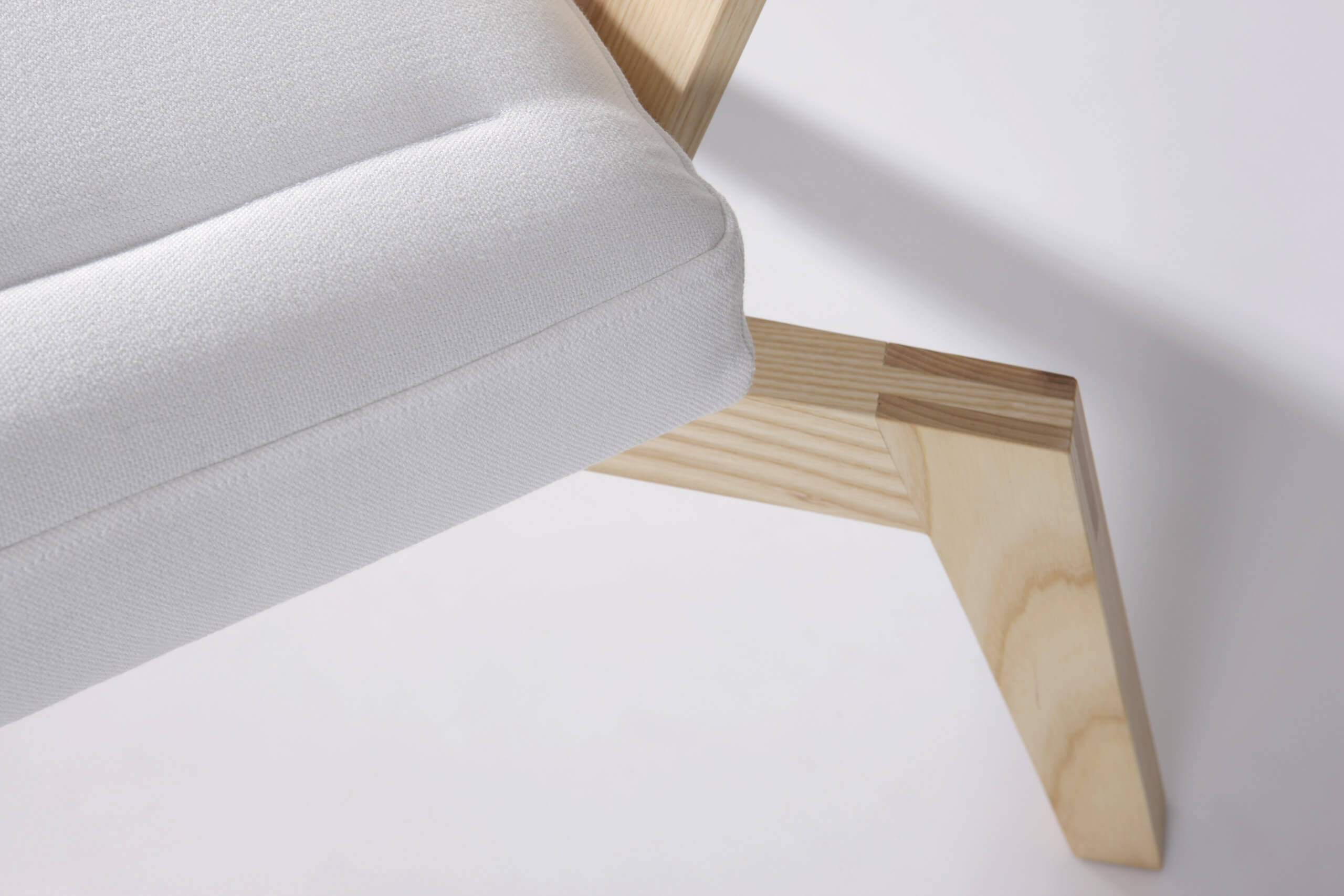 Material:  Esche massiv, MDF weiß lackiert, Textil