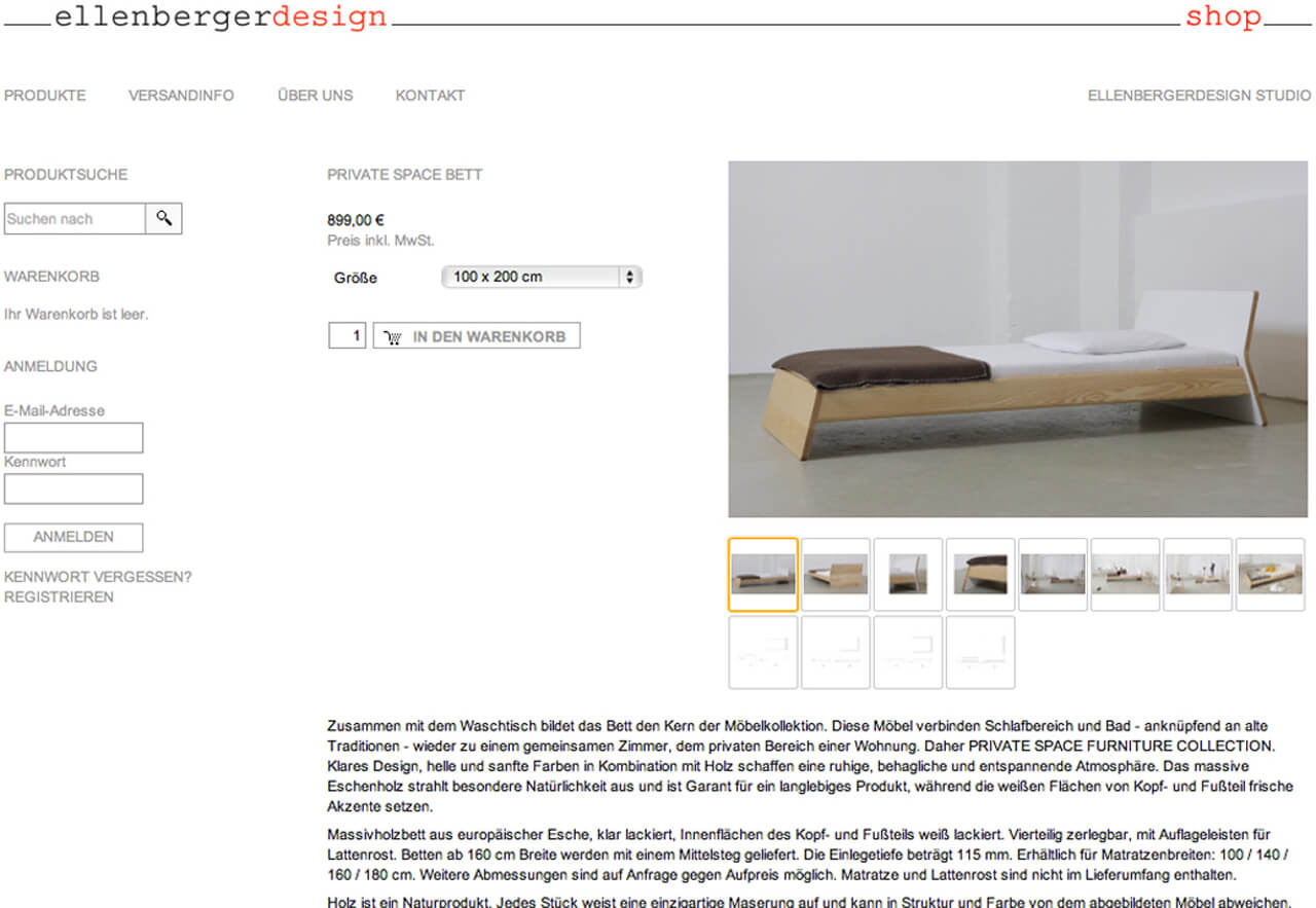 Da die Resonanz auf die PRIVATE SPACE FURNITURE COLLECTION über die Erwartungen gut war, haben wir uns entschlossen, mit einem eigenen online shop einen neuen Geschäftsbereich zu betreten. In diesem kleinen online shop können ab sofort neben den Möbeln der Kollektion eine weitere Auswahl der von Jannis Ellenberger gestalteten Produkte direkt bestellt werden. Die Möbel werden ohne Umwege auf dem direkten Weg aus den Werkshallen zum Endkunden geliefert, wobei deren Lieferung deutschlandweit frei Haus angeboten wird.