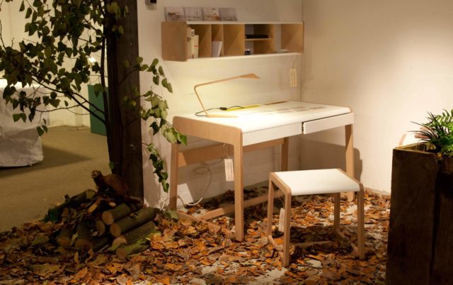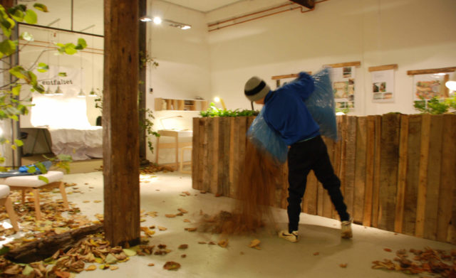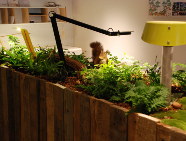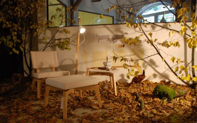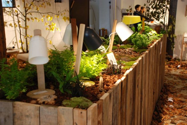 Eine Austellung der ganz besonderen Art entstand im Rahmen der diesjährigen offenen Ateliers im Bremer „Viertel“. Die Zusammenarbeit mit Gartengestalter Ofof Schlittenhartd gestaltete sich äußerst produktiv und kreativ. Die Räume des Studios verwandelten sich in einen Wald mit Bäumen, echten Waldbewohnern und sogar einem kleinen Tümpel umgeben von Moos – und mittendrin wuchsen wie Pilze aus dem Boden z.B. Modelle und Prototypen von Tischleuchten. Der feuchte Geruch der Natur war allgegenwärtig und so bot sich dem Besucher ein Erlebnis, das wahrhaft alle Sinne ansprach.